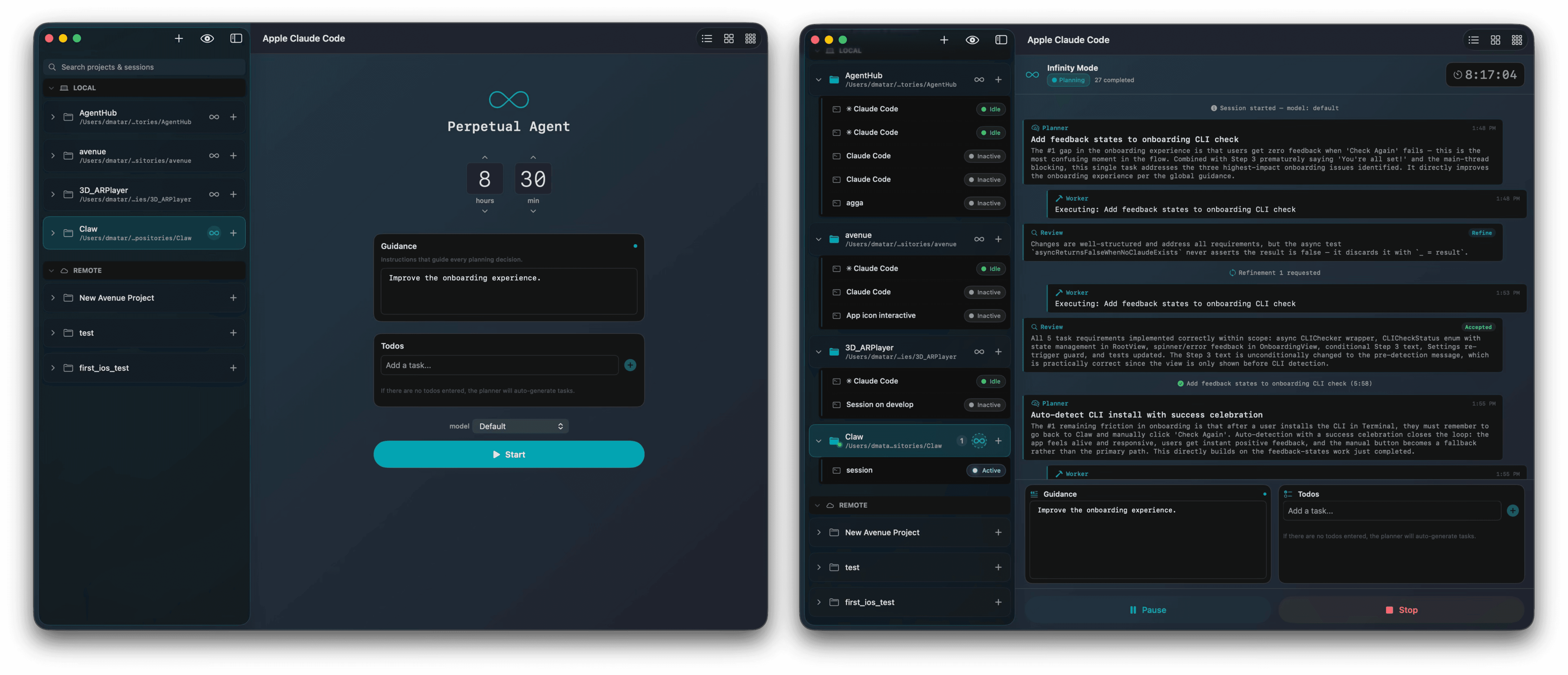 Designed & built the Apple Claude Code coding platform used by 40,000 engineers weekly across Apple. Designed a native macOS and iOS experience that makes cloud-based AI development feel instant and local — real-time streaming chat, inline diffs and terminal output, and a session model that keeps environments warm so developers never wait. Introduced Infinity Mode, a novel autonomous agent loop where a planner, worker, and reviewer collaborate in a continuous cycle to analyze codebases, execute changes, and self-correct — turning hours of manual iteration into unattended, quality-gated progress. Focused on removing friction at every layer: zero-config project setup, cross-device encrypted handoff via passkeys, and a unified workspace that scales from a quick bug fix to a multi-session orchestration workflow.
